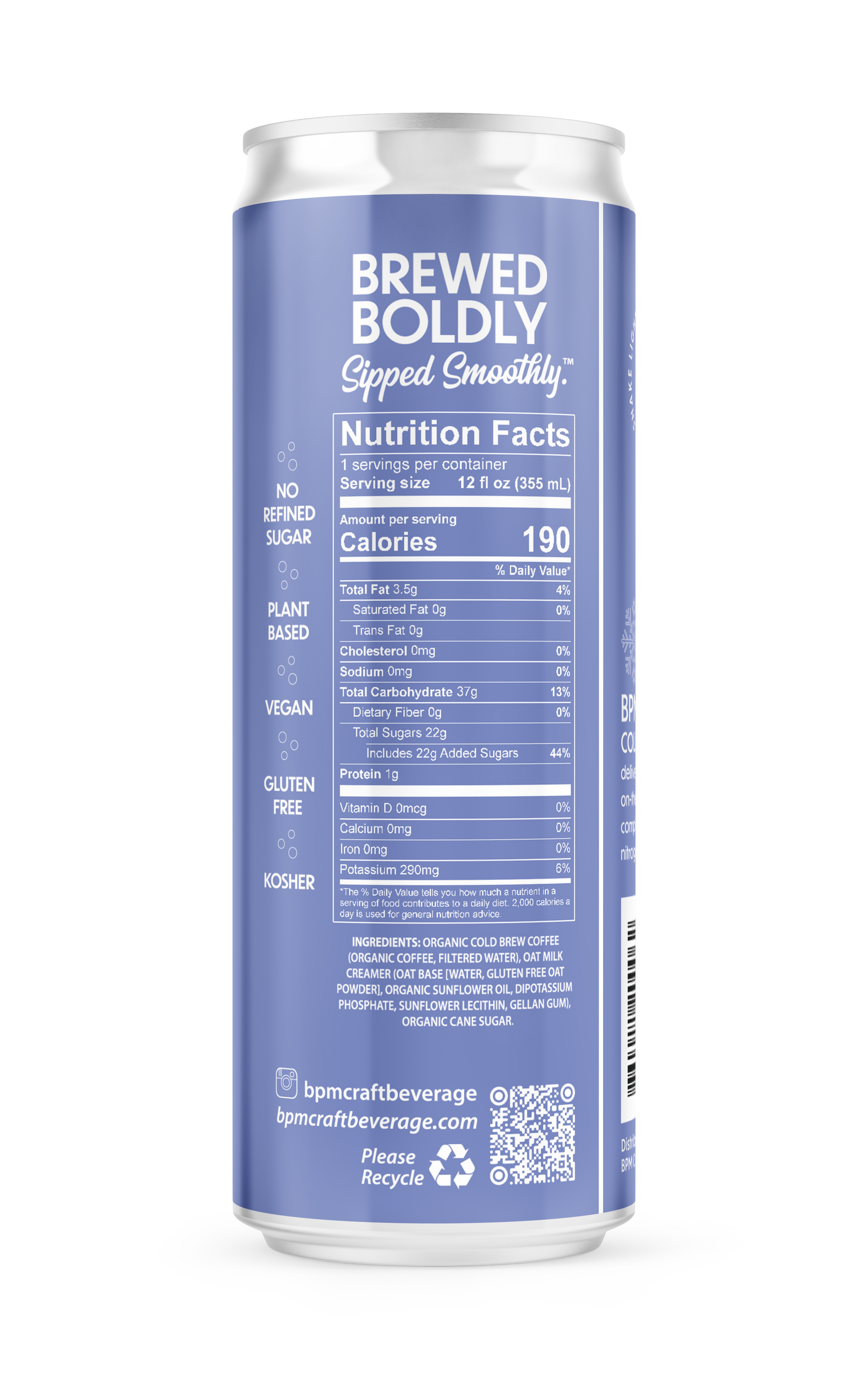 Experience the perfect blend of bold coffee and creamy oat milk with BPM Craft Beverage’s Organic Oatmilk Latte. Served in convenient 12oz cans, this latte is crafted with organic, non-GMO ingredients and contains no refined sugar.