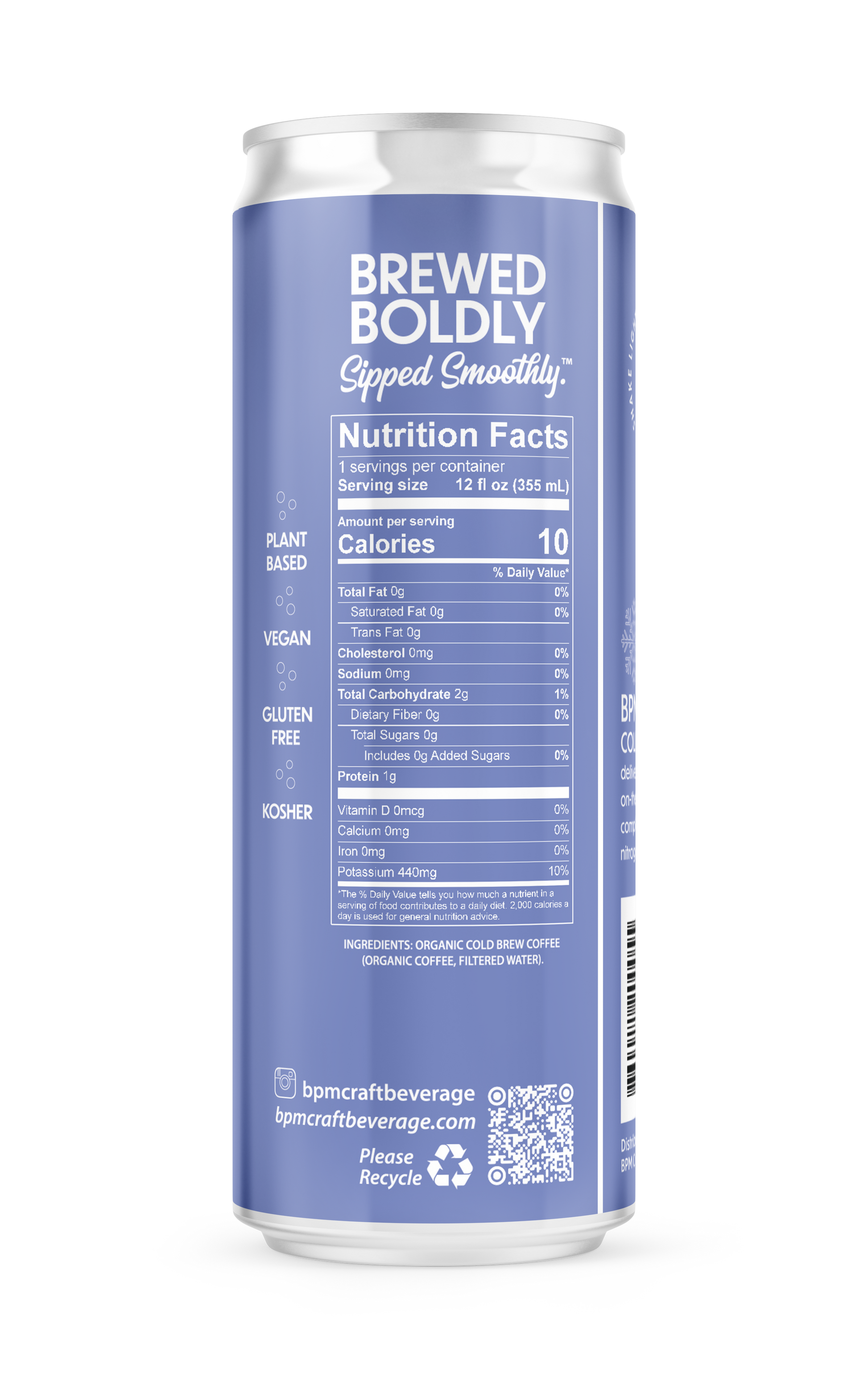 Meet the OB—BPM Craft Beverage’s Original Black Cold Brew Coffee, the true OG of bold, smooth flavor. This 12oz can is crafted with organic, non-GMO coffee beans to deliver pure coffee perfection.